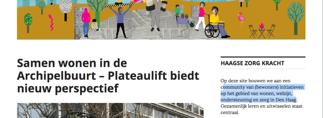 The website banner and logo for Haagse Zorgkracht, a community of resident initiatives.